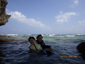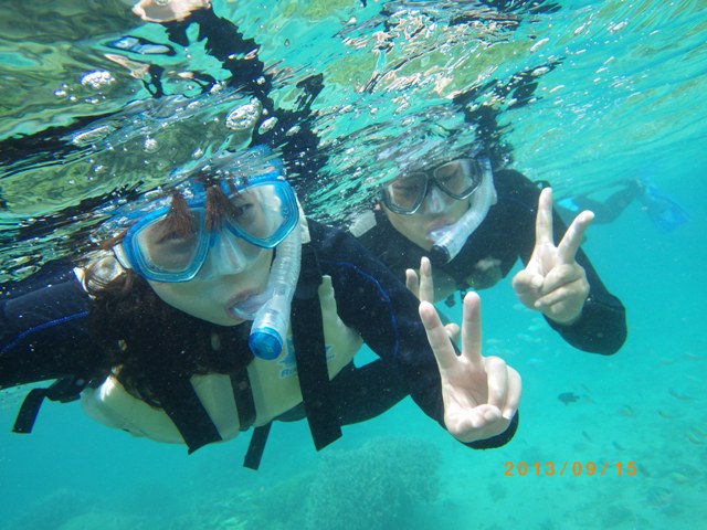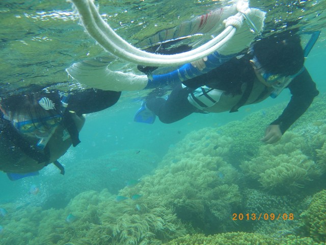 初めてシュノーケリングに挑戦のヘタレな慎之介もやっさんのお陰で
