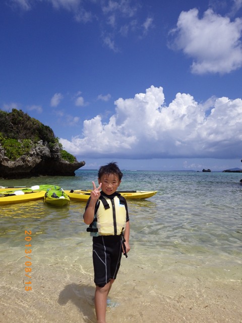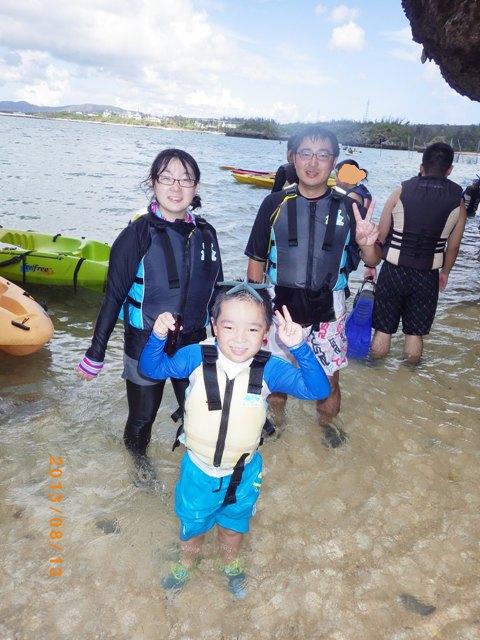 8月12日朝から3世代でカヤック&シュノーケル半日ツアーに